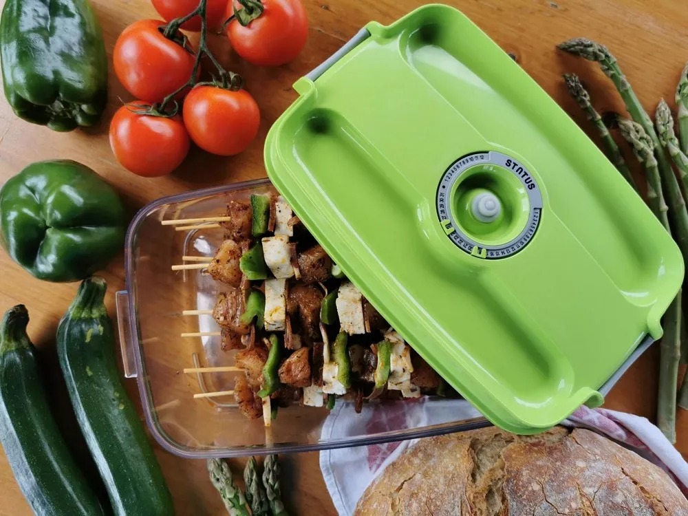 Potravinové boxy sú vhodné na vákuovanie hotových jedál vrátane polievok a omáčok. Využiť ich môžete aj na skladovanie ovocia, zeleniny, byliniek, salám a syrov. Ideálne sú aj na marinovanie mäsa. Výhodou je, že sa počas skladovania nešíri zápach v chladničke.Vyrobené v Slovinsku