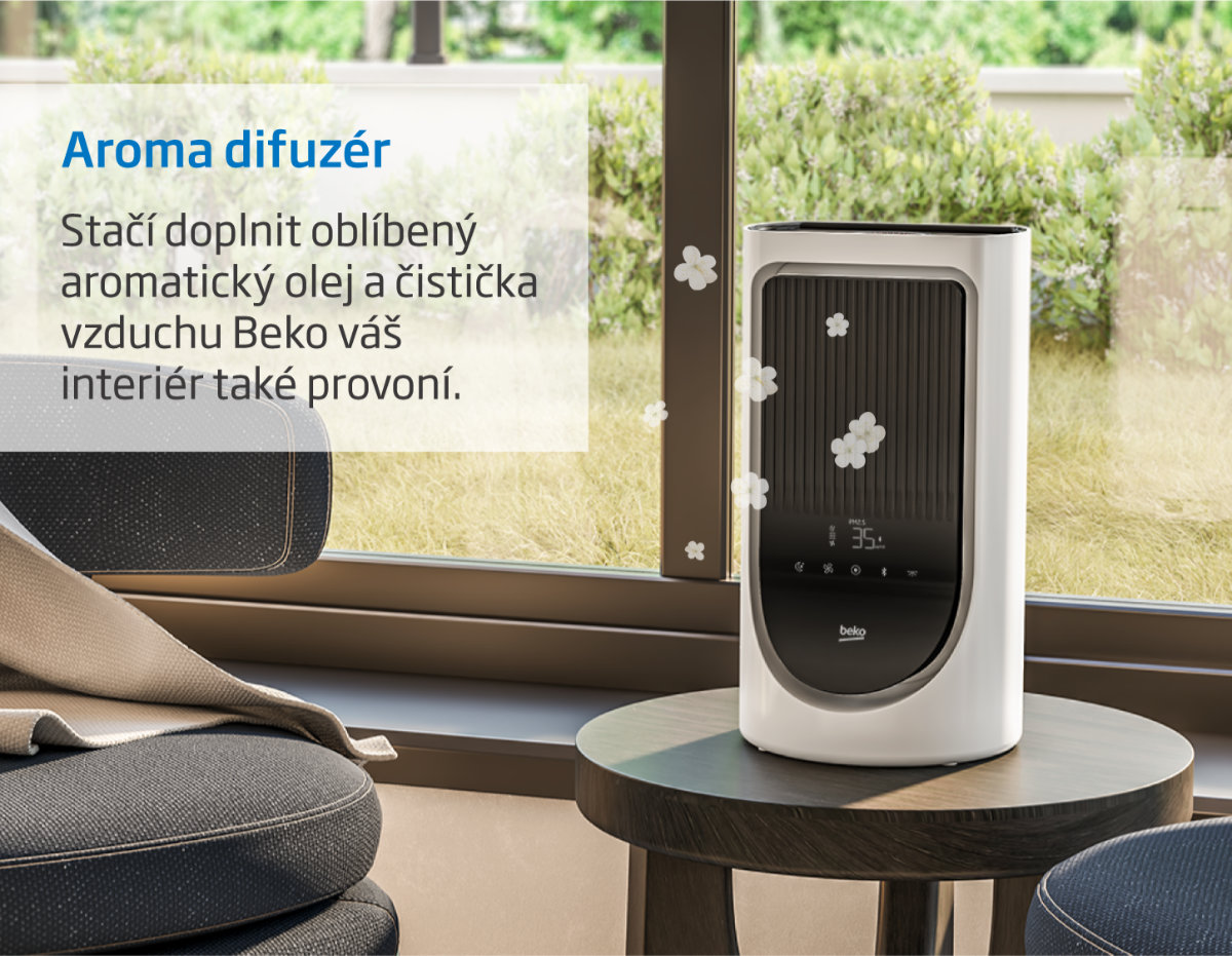 Okrem účinného čistenia vzduchu vám prístroj ponúkne aj príjemný zážitok z aromaterapie – stačí do špeciálneho zásobníka pridať pár kvapiek esenciálneho oleja podľa vašej nálady a vytvoriť si dokonale voňavé prostredie.