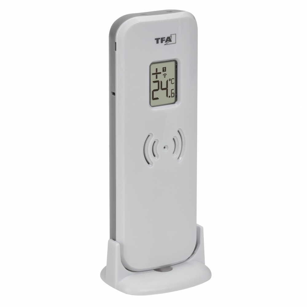 Meteostanica je dodávaná s externým bezdrôtovým čidlom s dosahom až 100 metrov, ktoré sníma vonkajšiu teplotu. K zariadeniu je možné pripojiť maximálne 3 bezdrôtové čidlá.Funkcie a vlastnosti meteostanice TFA 35.1174.02 SUN 2
