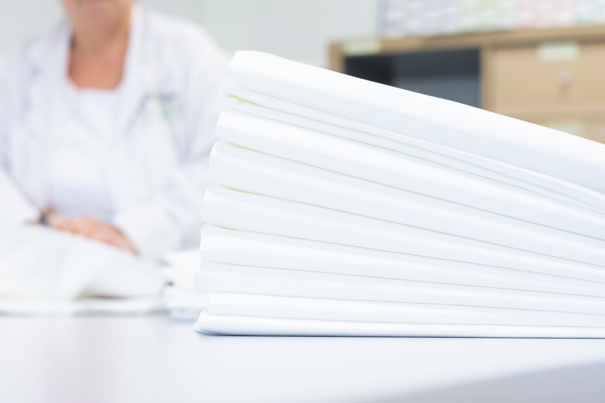 Poťahy ProtecSom sú vyrobené z bavlnenej textílie s patentovanou väzbou s vysokou hustotou vlákien. Táto unikátna technológia tkania vytvára jemnú sieťovinu tesne prepletených bavlnených mikrovlákien.