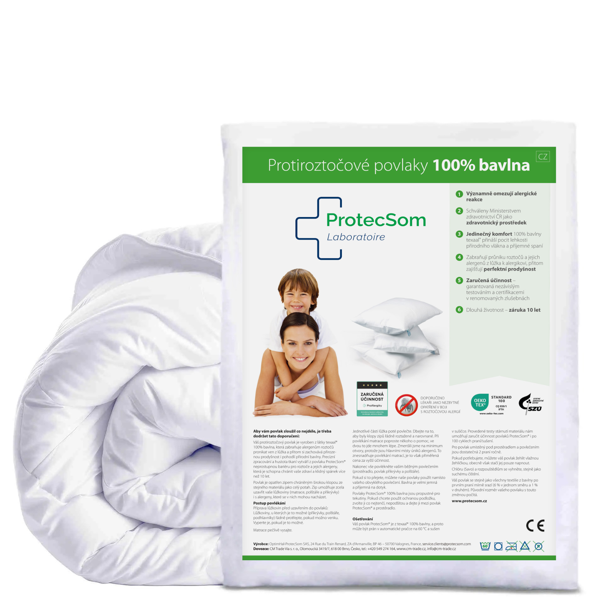 ProtecSom je francúzska značka špecializujúca sa na ochranu proti roztočom a podporu zdravého spánku. Každý produkt vzniká vo výrobnom závode vo Valognes spojením odborného know-how, dôkladného testovania a moderných technológií. Značka kladie dôraz na kvalitu, zdravotnú nezávadnosť, odolné materiály a jednoduchú údržbu, aby zákazníkom zaistila spoľahlivú a bezpečnú ochranu pred alergénmi.