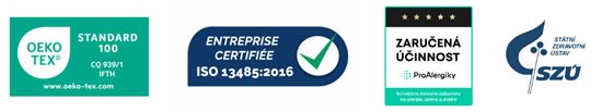 Poťahy ProtecSom sú zaradené ako zdravotnícky prostriedok triedy I a vyrábané v súlade s normou ISO 13485, ktorá stanovuje prísne požiadavky na kvalitu a spoľahlivosť. Certifikát ÖKO-TEX triedy 1 zároveň potvrdzuje, že neobsahujú žiadne toxické látky, a sú preto úplne bezpečné aj pre kontakt s citlivou detskou pokožkou.